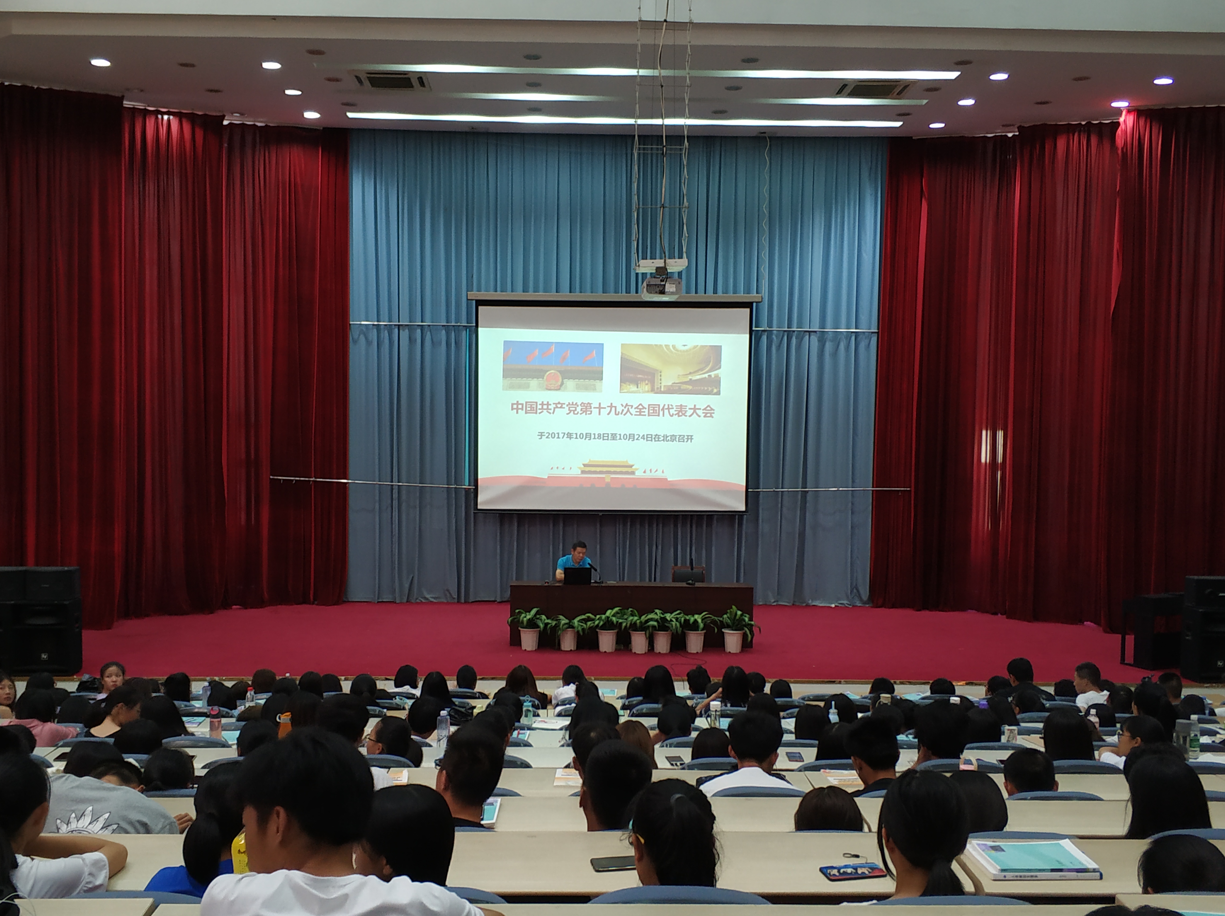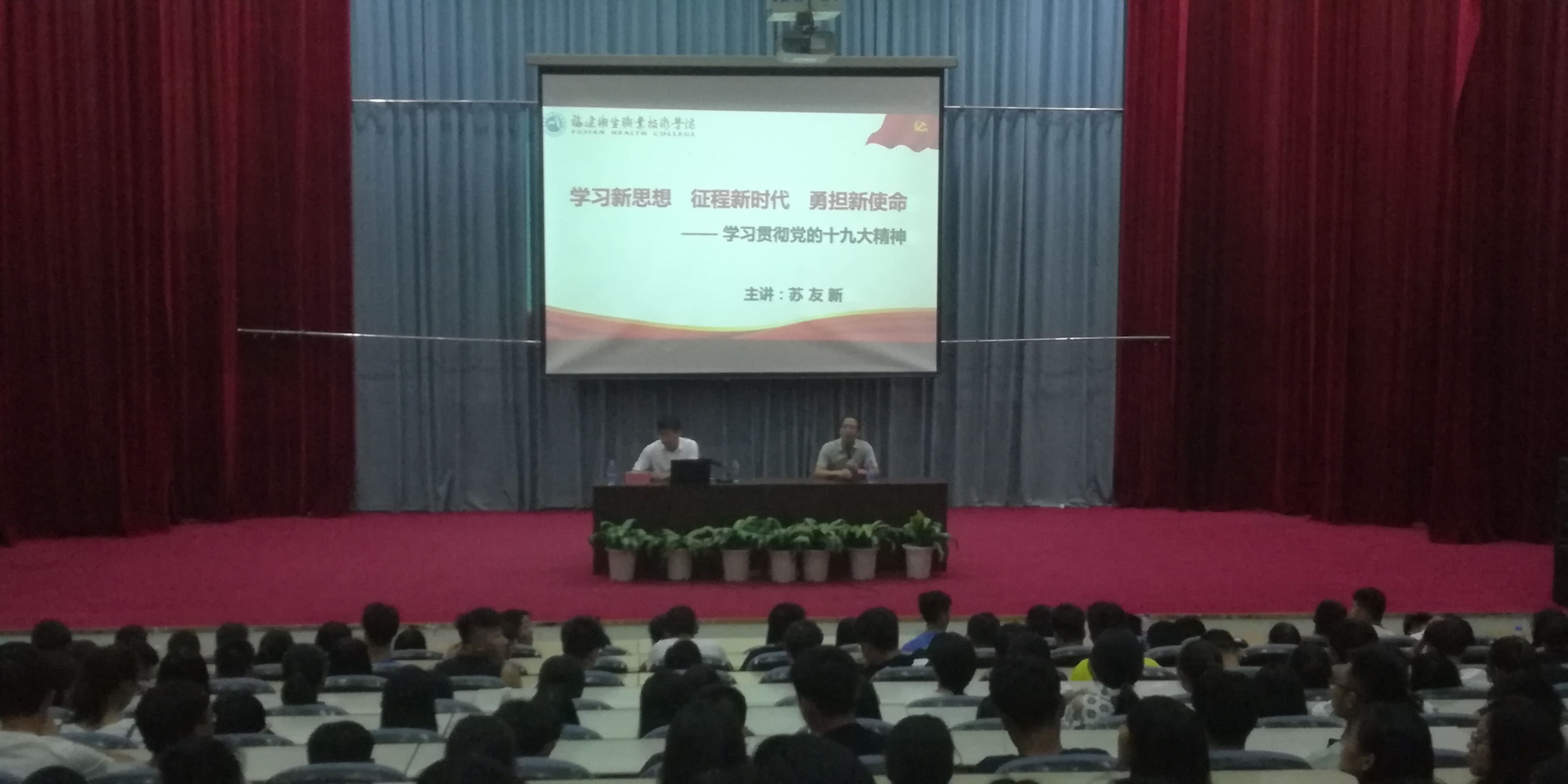 為深入推進習近平新時代中國特色社會主義思想和黨的十九大精神的“大學習”“大宣講”熱潮,在新生開課的第一周,9月25日至27日,福建衛(wèi)職院黨委書記曾武祈、院長蘇友新、副書記林建團、紀委書記李美華、副院長黃銘珊和副院長鄭翠紅為2018級新生講授了主題為“學習新思想 征程新時代 勇?lián)率姑獙W習貫徹黨的十九大精神”的《形勢與政策》第一課。