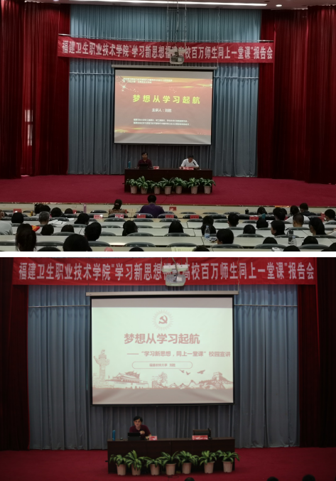 9月6日下午,福建省委教育工委學(xué)習(xí)貫徹習(xí)近平新時(shí)代中國(guó)特色社會(huì)主義思想宣講活動(dòng)暨“衛(wèi)院之原”馬克思主義論壇在我院學(xué)術(shù)報(bào)告廳舉行。福建省委宣講團(tuán)成員、建農(nóng)林大學(xué)學(xué)工部部長(zhǎng)、研工部部長(zhǎng)劉勝副研究員為師生作了題為《夢(mèng)想從學(xué)習(xí)起航》的專題講座。學(xué)院黨委副書記林建團(tuán)、副院長(zhǎng)黃銘珊,學(xué)工干部、各系部黨總支副書記、思政理論課專職教師以及習(xí)近平新時(shí)代中國(guó)特色社會(huì)主義思想讀書社、學(xué)院第六期青馬工程暨學(xué)生干部骨干培訓(xùn)班學(xué)員、各系部學(xué)生代表等共420多人聽取了講座,講座由院黨委副書記林建團(tuán)主持。