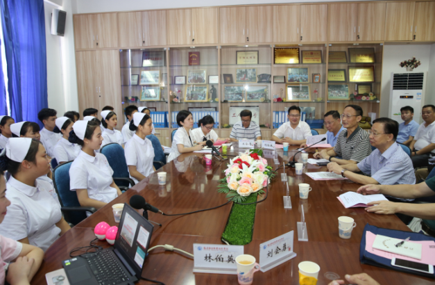 為認(rèn)真學(xué)習(xí)貫徹習(xí)近平新時(shí)代中國特色社會(huì)主義思想,堅(jiān)決打贏打好精準(zhǔn)脫貧攻堅(jiān)戰(zhàn),2017年我院與南平市扶貧協(xié)會(huì)等政府部門、福建瑞泉集團(tuán)等企業(yè)合作,招收“中職護(hù)理專業(yè)精準(zhǔn)扶貧班”學(xué)生80余名,現(xiàn)已順利辦學(xué)一周年。9月20日,省、市扶貧兩會(huì)領(lǐng)導(dǎo),再次來到我院對該項(xiàng)目調(diào)研指導(dǎo),并與師生代表進(jìn)行了親切座談。