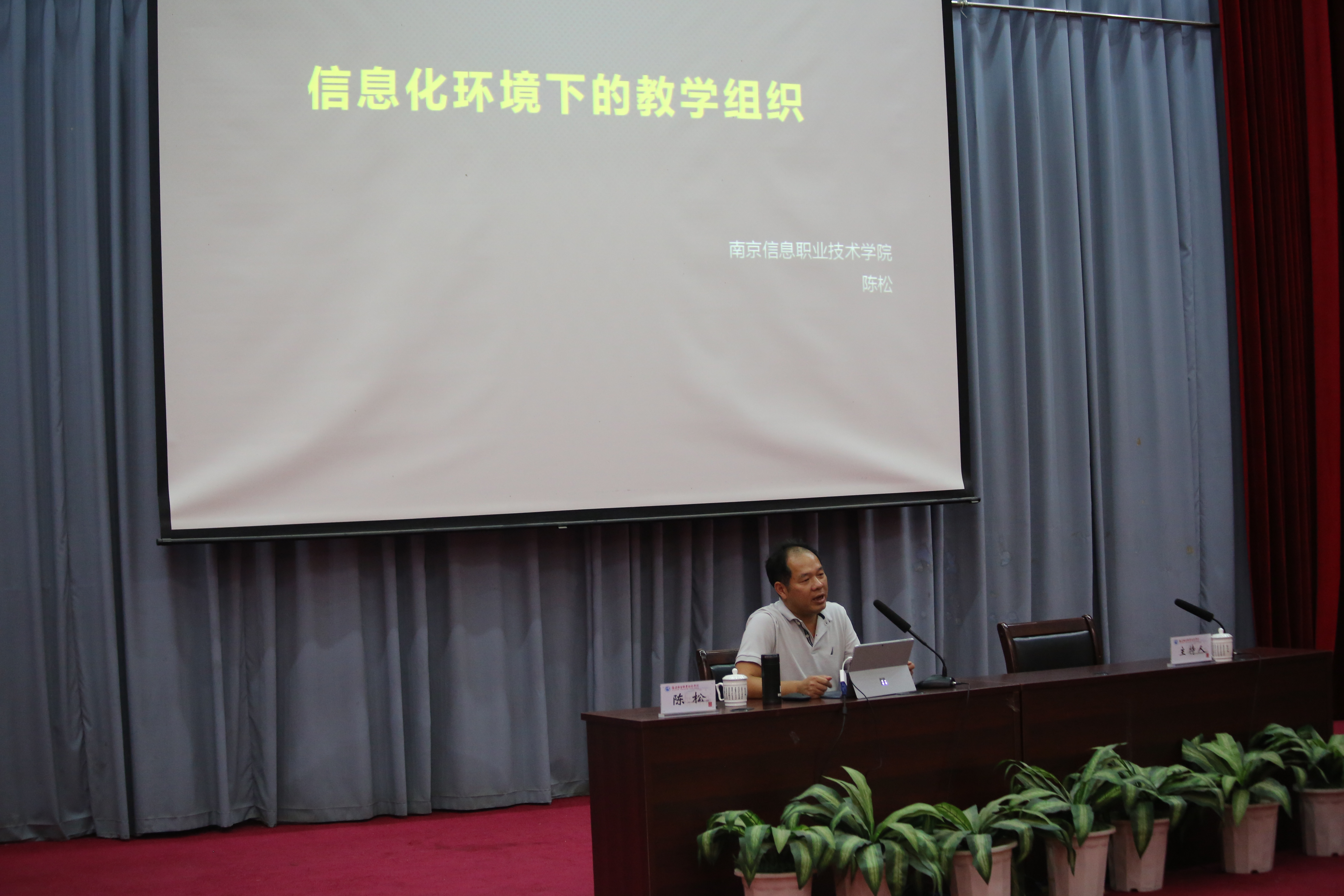 此次研討會(huì),學(xué)院還邀請了原天津醫(yī)學(xué)高等??茖W(xué)校校長沈彬教授和南京信息職業(yè)技術(shù)學(xué)院圖文信息中心陳松主任2位專家做主題講座。沈彬教授做題為《新時(shí)代新使命新征程—進(jìn)一步深化衛(wèi)生職業(yè)教育改革發(fā)展的思考》講座,他指出在職業(yè)教育進(jìn)入歷史改革發(fā)展最好時(shí)期,衛(wèi)生職業(yè)教育改革發(fā)展取得顯著成績的背景下,衛(wèi)生職業(yè)教育面臨的主要問題是:新時(shí)代滿足人民群眾日益增長的全方位、全周期優(yōu)質(zhì)健康服務(wù)需求與衛(wèi)生健康領(lǐng)域人才培養(yǎng)不平衡、不充分之間的矛盾。應(yīng)對這個(gè)問題,醫(yī)藥衛(wèi)生類高職院校就必須從進(jìn)一步深化院校教育教學(xué)改革,做好三方面的工作,一是要把好入口關(guān),提高生源質(zhì)量;二是要規(guī)范教育過程管理,確保人才培養(yǎng)質(zhì)量;三是要把住出口關(guān),健全教學(xué)質(zhì)量評價(jià)。沈彬教授講座,內(nèi)容豐富,有助于我們認(rèn)清醫(yī)藥衛(wèi)生職業(yè)教育新形勢,深入思考如何推進(jìn)醫(yī)藥衛(wèi)生職業(yè)教育教學(xué)改革。陳松主任做題為《信息化環(huán)境下的教學(xué)組織》講座,他重點(diǎn)介紹了信息化在教學(xué)中如何應(yīng)用,信息化資源與資源下載工具的使用,以及信息化環(huán)境下的教學(xué)組織等。陳松主任還結(jié)合江蘇省信息化教學(xué)大賽的實(shí)際情況及自身的相關(guān)經(jīng)驗(yàn),專門對全國職業(yè)院校技能大賽職業(yè)院校教學(xué)能力比賽要求進(jìn)行了相應(yīng)解讀。陳松主任講座精彩實(shí)用,為學(xué)院教職員工信息化教學(xué)水平的提高帶來了啟示和幫助。