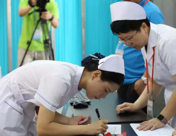 本次大賽由各省、自治區(qū)、直轄市經(jīng)預(yù)賽選拔的優(yōu)秀選手組成代表隊(duì),每名選手首先在健康評估室書面完成臨床護(hù)理案例分析,然后進(jìn)入操作室根據(jù)患者病情及醫(yī)囑要求,先后完成右踝扭傷固定包扎、徒手心肺復(fù)蘇、靜脈留置針輸液、氣道切開護(hù)理四項(xiàng)護(hù)理技能操作,主要考核選手護(hù)理思維判斷、分析問題、解決問題的能力,檢測選手急救護(hù)理技能操作水平及人文職業(yè)素養(yǎng)。