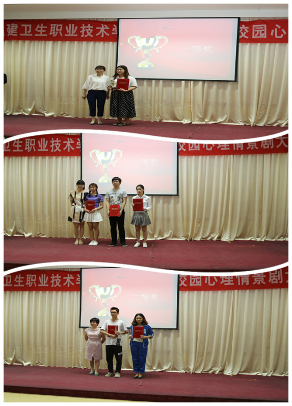 在比賽中,各支參賽隊伍分別從入學(xué)適應(yīng)、追逐夢想、同伴關(guān)系、自我成長、失戀等不同角度展現(xiàn)了當(dāng)下大學(xué)生的校園生活,通過作品演繹為同學(xué)們解決心理問題提供積極經(jīng)驗。經(jīng)過激烈角逐,17護理318《轉(zhuǎn)身擁抱陽光》獲一等獎,17檢驗302《被排斥的后進生》、17臨床304《我的大學(xué)》獲二等獎,17預(yù)防301《明天,你好》、17臨定301《跨過去,前面便是天》、17助產(chǎn)304《最初的夢想》獲三等獎。