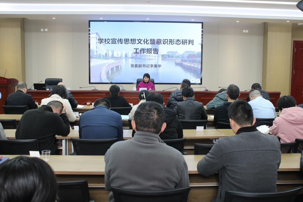 會上,黨委副書記李美華作學校宣傳思想文化工作、下半年意識形態(tài)研判工作報告,全面總結(jié)了2024年學校宣傳思想文化暨意識形態(tài)工作,分析當前學校宣傳思想文化工作暨意識形態(tài)工作的不足,并安排部署2025年的工作。李美華指出,2024年學校強化理論武裝,筑牢理想信念;打造名師好課,深化課程育人;凝練校園文化,加強文化育人;深化實踐育人,激發(fā)青年擔當;強化意識形態(tài),壓實工作責任;加強陣地管理,強化新聞宣傳;多方合力協(xié)作,防范宗教滲透。她強調(diào)2025年做好宣傳思想文化暨意識形態(tài)工作,要進一步推動習近平新時代中國特色社會主義思想融入校園文化創(chuàng)建工作,完善意識形態(tài)陣地建設管理,持續(xù)做好校園文化建設。