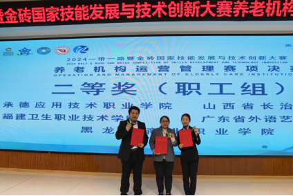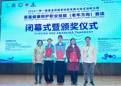 近日,2024“一帶一路”暨金磚國家技能發(fā)展與技術(shù)創(chuàng)新大賽(簡稱“金磚大賽”)首屆健康照護職業(yè)技能(老年方向)賽項和養(yǎng)老機構(gòu)運營管理賽項分別在山東和貴州落下帷幕,我校老年保健與管理專業(yè)師生參加兩個賽項的比賽,取得良好成績。