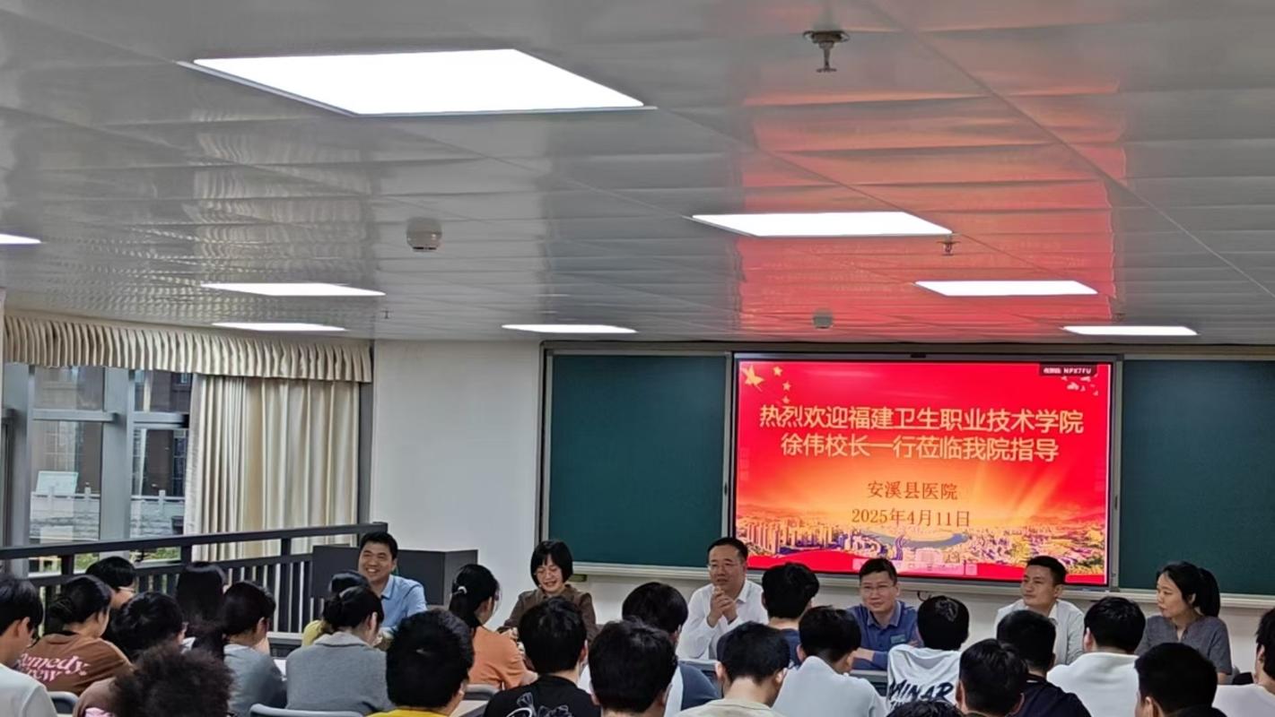 4月11日,校長徐偉率醫(yī)學(xué)院部分專業(yè)帶頭人、專業(yè)老師一行赴安溪縣開展臨床教學(xué)專項(xiàng)調(diào)研,先后走訪我校教學(xué)醫(yī)院安溪縣醫(yī)院、安溪縣中醫(yī)院,通過實(shí)地考察、座談交流等方式,深入了解醫(yī)教協(xié)同育人實(shí)踐,加強(qiáng)學(xué)校臨床醫(yī)學(xué)專業(yè)和針灸推拿專業(yè)與醫(yī)院之間的友誼與合作。