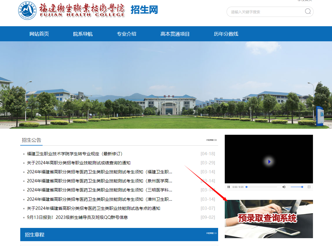 ①進(jìn)入頁面,點(diǎn)擊“預(yù)錄取查詢系統(tǒng)”。