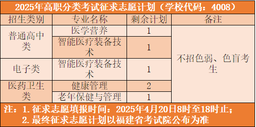 福建衛(wèi)生職業(yè)技術(shù)學(xué)院2025年高職分類招考常規(guī)志愿錄取分?jǐn)?shù)