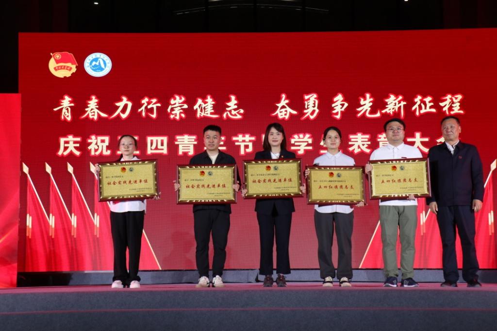 校黨委書記曾武祈為五四紅旗團總支、社會實踐先進單位獲獎代表頒獎。