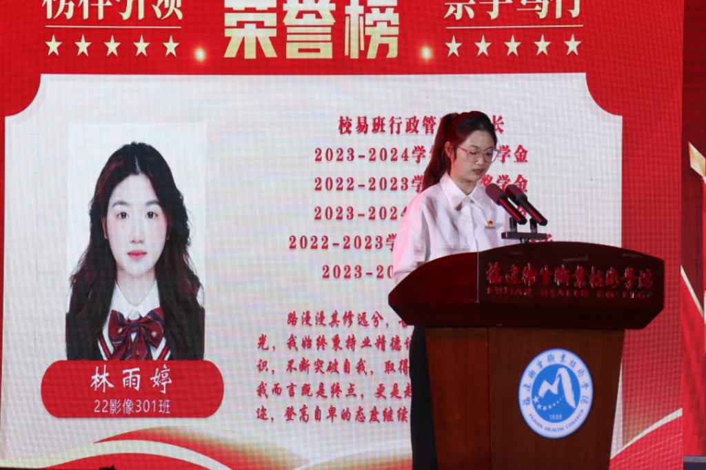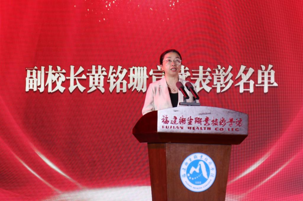 校長徐偉為文明班級、國家獎學金、國家勵志獎學金、福建省紅十字會南丁格爾護理獎學金、技能賽獲獎個人代表頒獎。