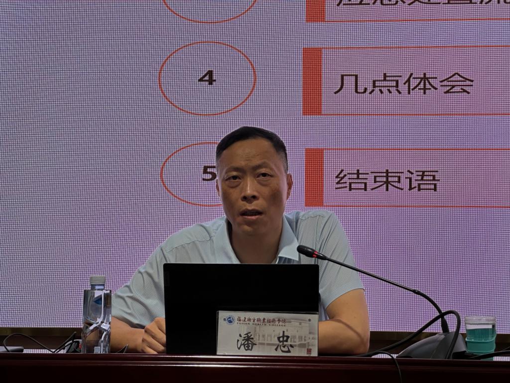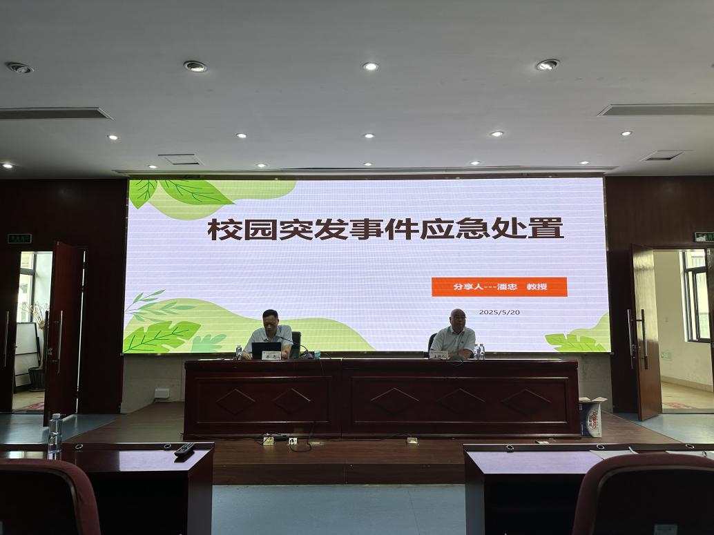 為進(jìn)一步提升學(xué)校安全管理水平,強(qiáng)化校園突發(fā)事件應(yīng)急處置能力,構(gòu)建和諧平安校園環(huán)境,5月21日,我校特邀福建高等教育學(xué)會(huì)保衛(wèi)學(xué)專業(yè)委員會(huì)副理事長(zhǎng)、福建船政交通職業(yè)學(xué)院安全保衛(wèi)處處長(zhǎng)潘忠教授來(lái)校開展“高校校園突發(fā)事件應(yīng)急處置”專題講座。學(xué)校分管學(xué)生工作和安全的校領(lǐng)導(dǎo)、全體中層干部、輔導(dǎo)員、安全工作處工作人員聆聽講座。