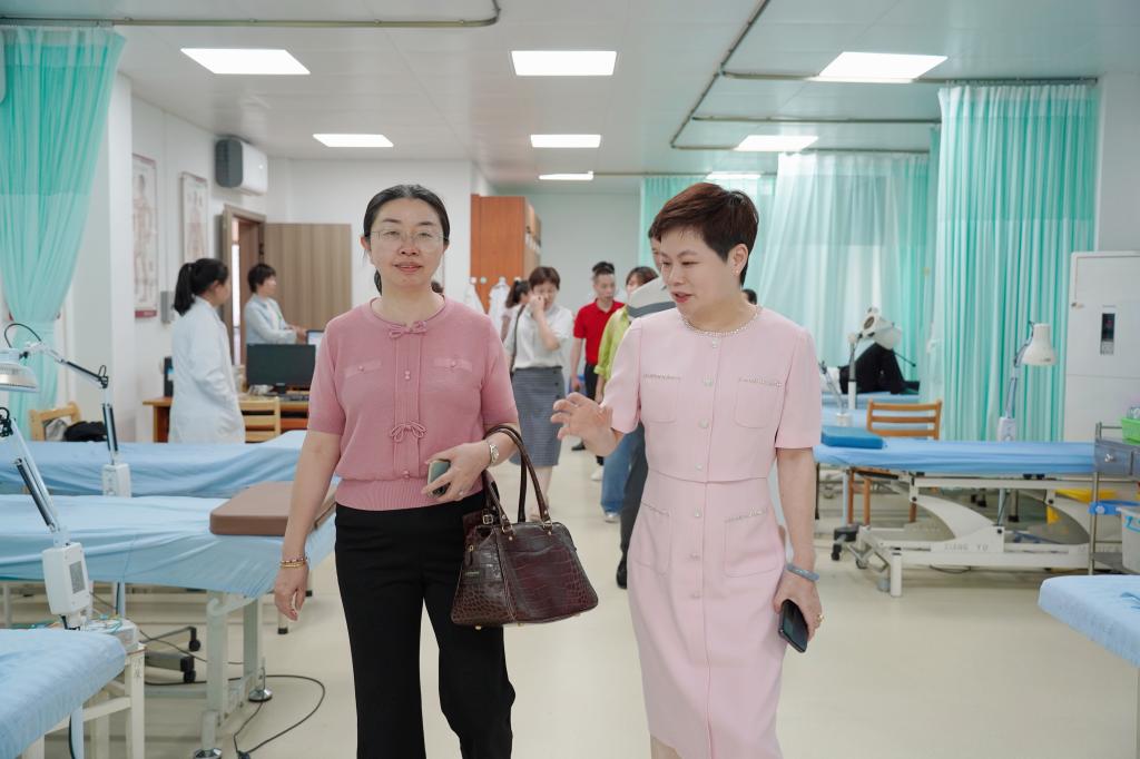 會后,在陳豪英的陪同下,我校一行實(shí)地參觀了醫(yī)院門急診大樓、病房大樓、中醫(yī)特色診療中心及中醫(yī)文化廣場,詳細(xì)了解了醫(yī)院基礎(chǔ)設(shè)施建設(shè)和文化傳承創(chuàng)新成果。