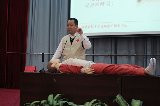 省紅十字會救護(hù)培訓(xùn)中心鄭明華老師首先通過案例分析了急救的重要性,使同學(xué)們認(rèn)識到志愿者工作的重大意義。鄭老師結(jié)合現(xiàn)場演示為志愿者們生動(dòng)講解了心肺復(fù)蘇的具體操作流程,同時(shí)指出錯(cuò)誤的動(dòng)作所帶來的嚴(yán)重后果,使志愿者們受益匪淺。鄭老師生動(dòng)有趣地講解獲得了志愿者們的認(rèn)同,大家認(rèn)真聽講,積極與老師互動(dòng),培訓(xùn)大會效果顯著。