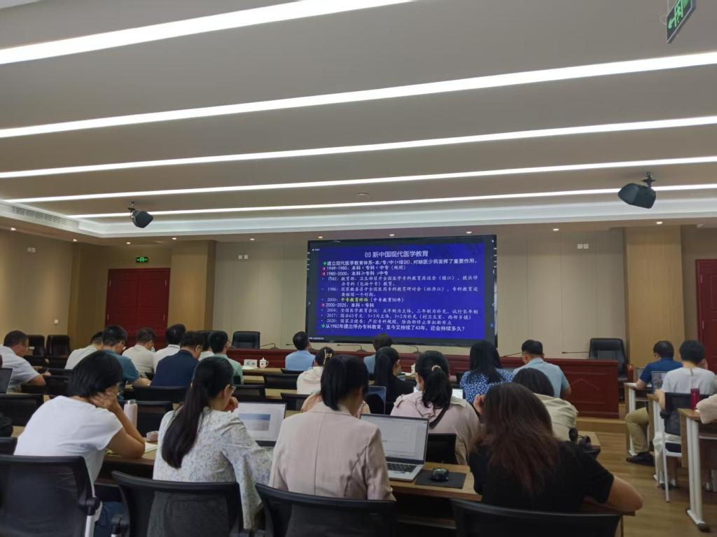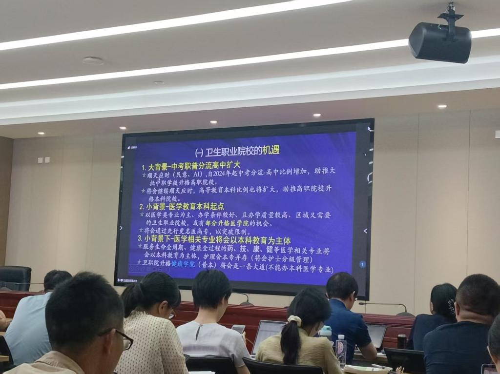 6月10日,全國衛(wèi)生健康職業(yè)教育教學指導委員會專家系列講座(第三期)在線上舉辦。我校在厚德樓六樓會議室設(shè)立分會場,校長徐偉,副校長周雄、朱扶蓉以及相關(guān)職能處室負責人、二級學院負責人、骨干教師等近百人參加會議。
