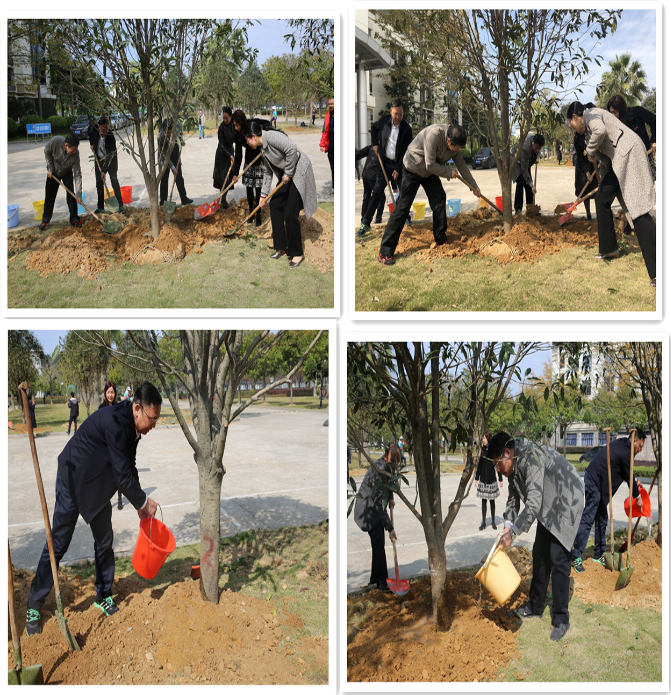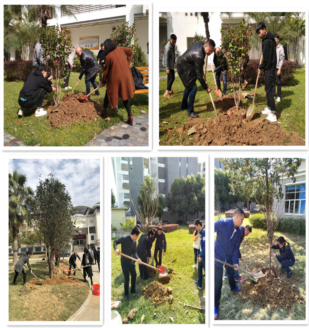 為貫徹落實黨的十九大對生態(tài)文明建設(shè)作出的戰(zhàn)略部署,建設(shè)美麗校園,我院組織開展“讓綠色妝點校園,讓師生共享美麗”主題植樹活動。 3月12日上午,曾武祈書記、蘇友新院長等院領(lǐng)導(dǎo)帶領(lǐng)各職能部門、各系部負(fù)責(zé)人及學(xué)生代表參加本次植樹活動。活動現(xiàn)場眾人熱情高漲,揚鎬揮鏟,培土澆水,一片熱火朝天而又井然有序的景象。大家用實際行動為美麗校園建設(shè)再添一抹絢麗的綠意。