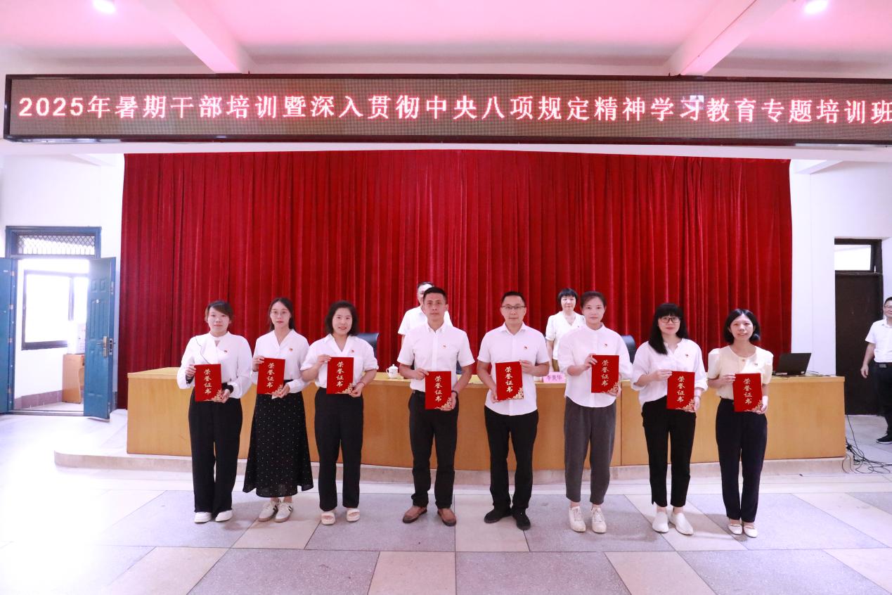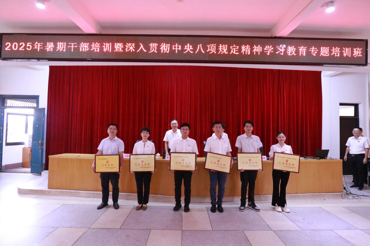 本次開班式上還進(jìn)行了2025年“兩優(yōu)一先”表彰儀式,李美華宣讀表彰決定,校領(lǐng)導(dǎo)們?yōu)槭鼙碚么眍C獎(jiǎng)。