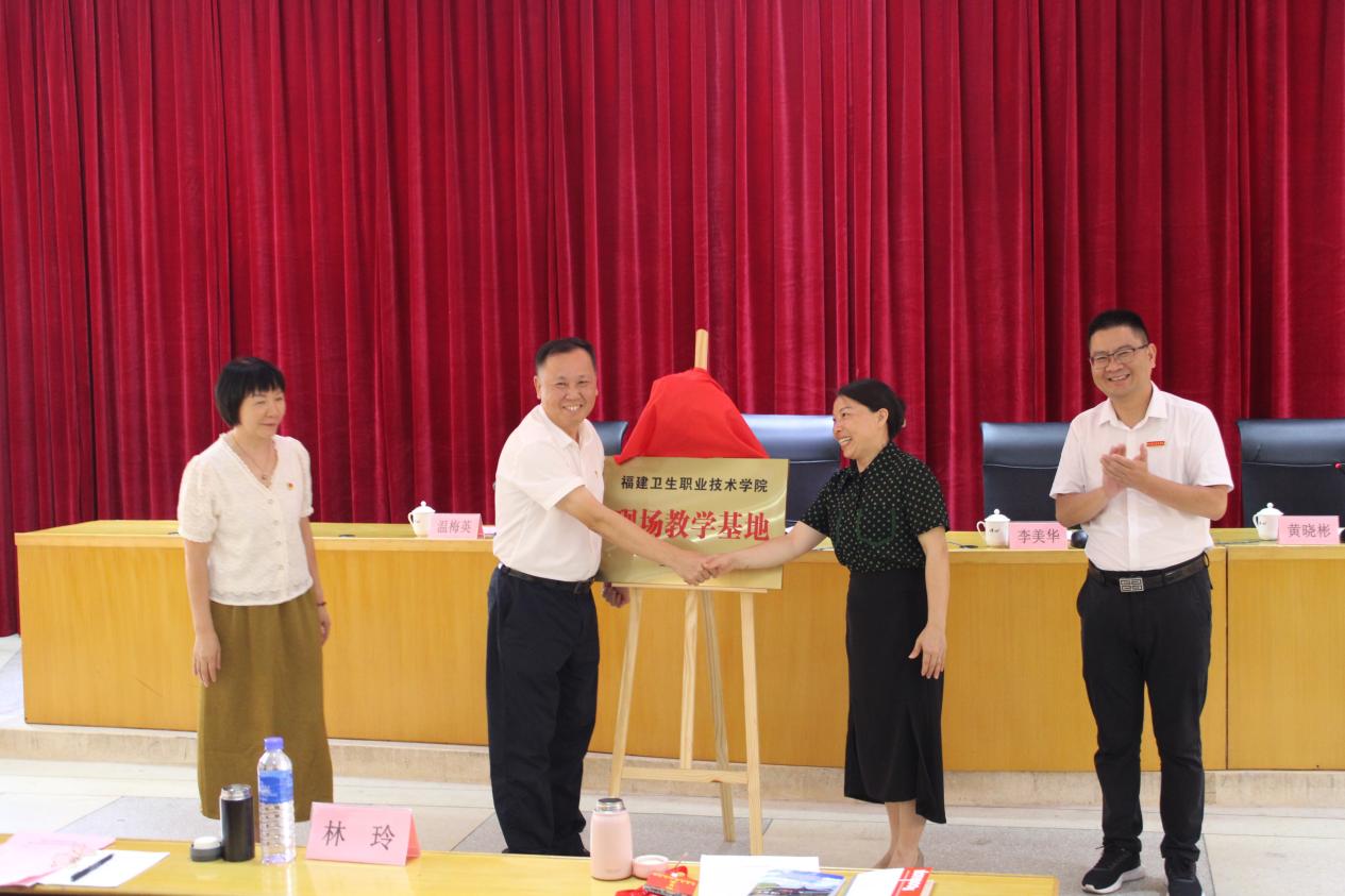 隨后,曾武祈和溫梅英共同為福建衛(wèi)生職業(yè)技術(shù)學(xué)院現(xiàn)場(chǎng)教學(xué)基地揭牌。