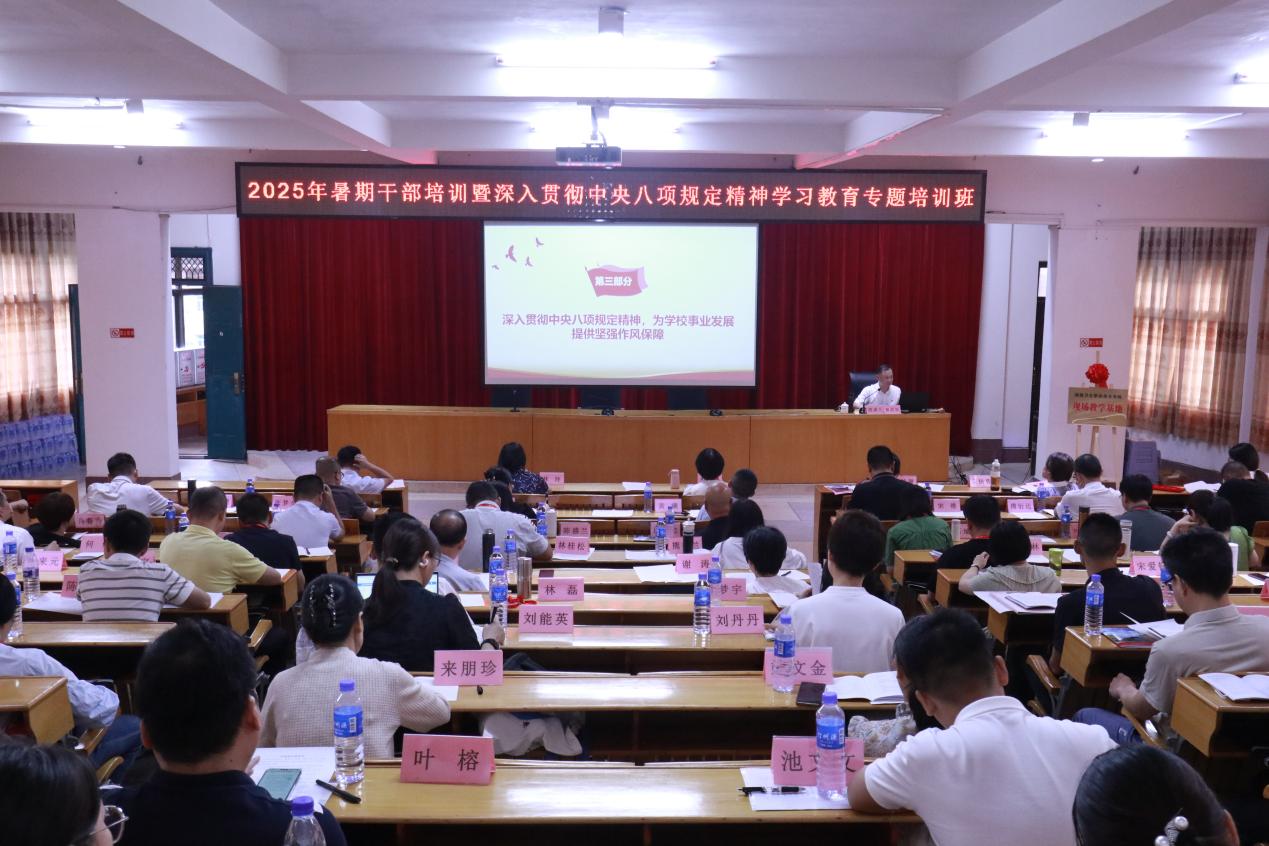 開班式結(jié)束后,曾武祈以《深入貫徹中央八項(xiàng)規(guī)定及其實(shí)施細(xì)則精神 以作風(fēng)建設(shè)新成效推進(jìn)學(xué)校發(fā)展新突破》為題作專題黨課。
