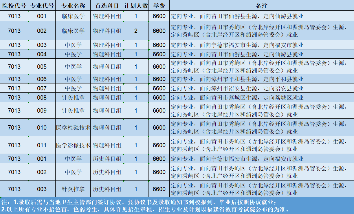 2025年福建省普通高考分專業(yè)招生計(jì)劃表(定向?qū)I(yè))