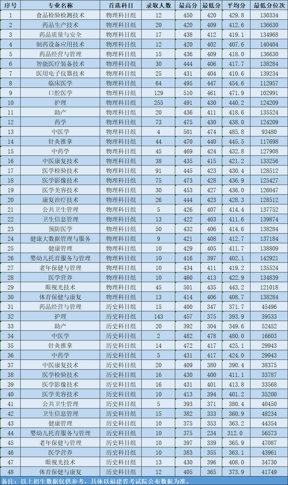 2024年福建省高職本科貫通人才培養(yǎng)項(xiàng)目錄取分?jǐn)?shù)及位次情況