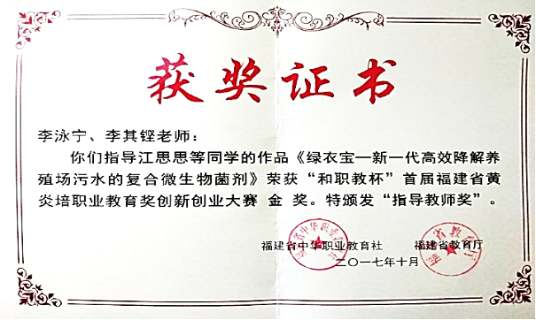 “和職教杯”首屆福建省黃炎培職業(yè)教育獎(jiǎng)創(chuàng)新創(chuàng)業(yè)大賽高職組金獎(jiǎng)