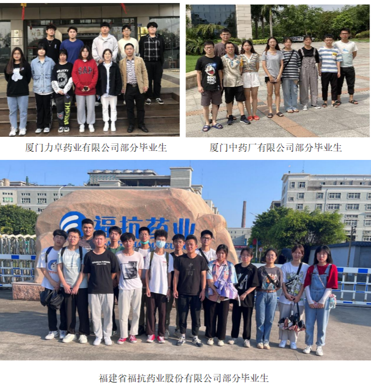 本專業(yè)畢業(yè)生主要在藥品生產(chǎn)企業(yè)、藥品檢測(cè)部門和生物制品企業(yè)等相關(guān)企事業(yè)單位從事藥品生產(chǎn)、質(zhì)量檢測(cè)和技術(shù)研發(fā)等工作,培養(yǎng)質(zhì)量獲得社會(huì)的廣泛認(rèn)可,近三年就業(yè)率達(dá)98%以上,福建廣生堂藥業(yè)股份有限公司、福建省??顾帢I(yè)股份有限公司、廈門力卓藥業(yè)有限公司和廈門萬泰滄海生物技術(shù)有限公司等福建省知名企業(yè)均有就業(yè)。