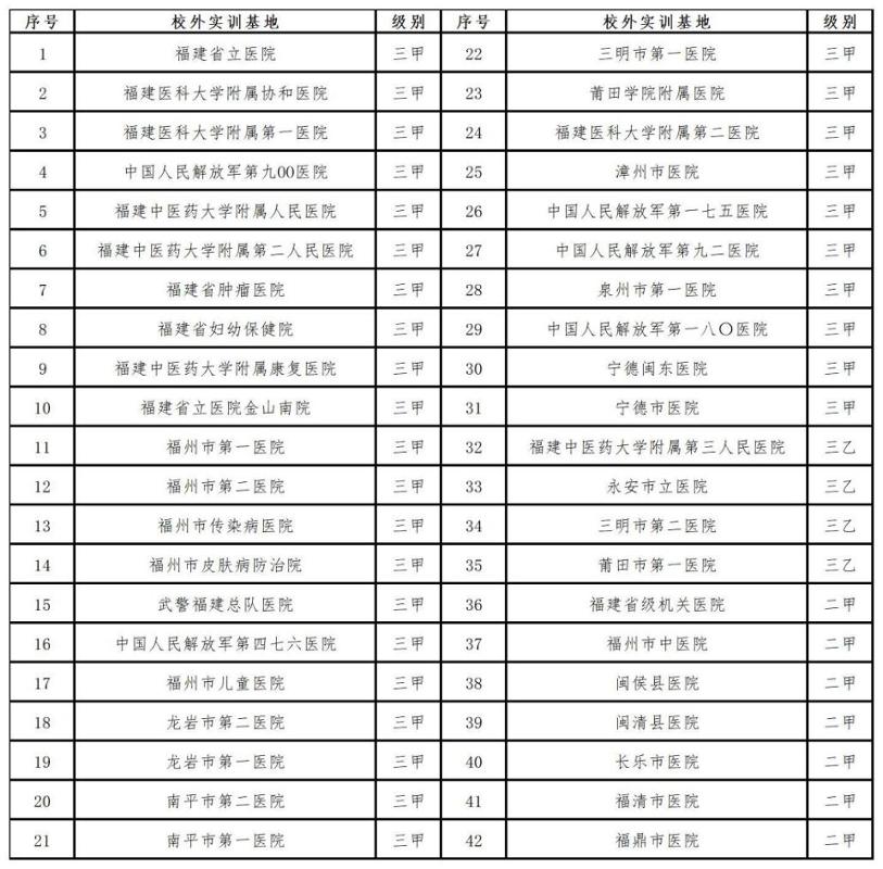 專業(yè)現(xiàn)有包括福建省腫瘤醫(yī)院、福建省立醫(yī)院、福建醫(yī)科大學(xué)附屬協(xié)和醫(yī)院、福建醫(yī)科大學(xué)附屬第一醫(yī)院等31家三甲醫(yī)院及11家二甲以上醫(yī)院作為校外實(shí)習(xí)基地。