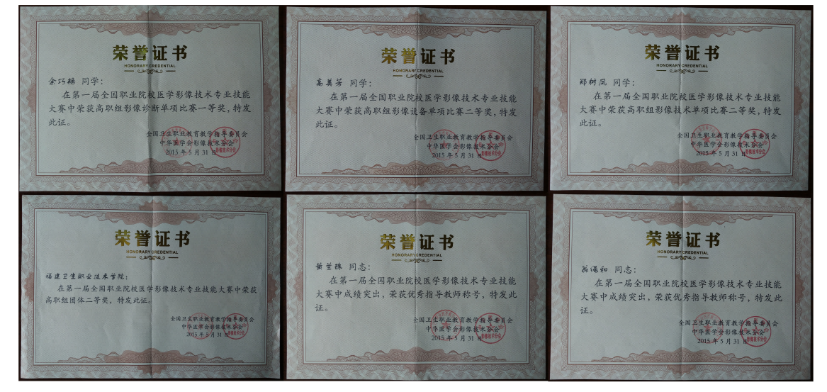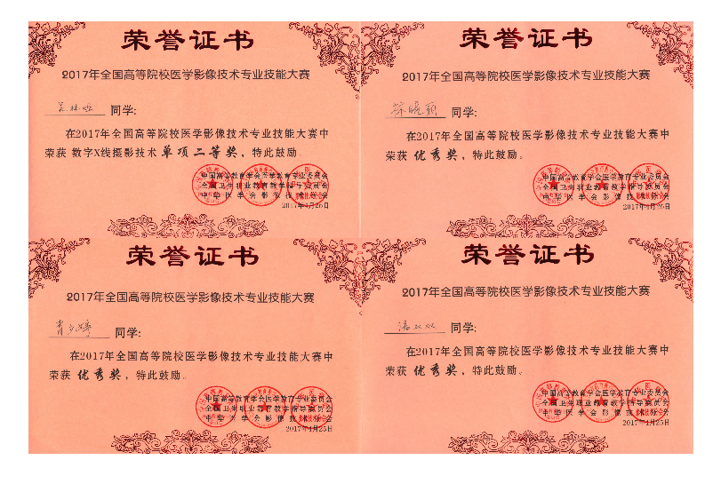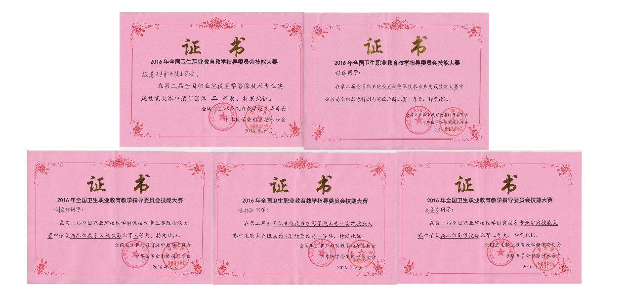 首屆全國(guó)職業(yè)院校醫(yī)學(xué)影像技術(shù)專業(yè)實(shí)踐技能大賽獲獎(jiǎng)證書