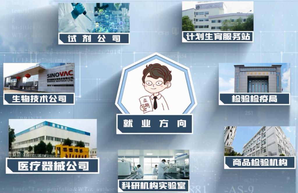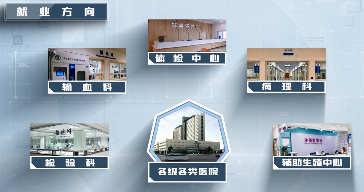 學(xué)生畢業(yè)后可面向各級(jí)各類醫(yī)院的檢驗(yàn)科、輸血科、體檢中心、病理科、輔助生殖中心。第三方醫(yī)學(xué)檢驗(yàn)中心、各級(jí)疾病預(yù)防控制中心、血站/血液中心。醫(yī)療器械公司、生物技術(shù)公司、試劑公司、計(jì)劃生育服務(wù)站、檢驗(yàn)檢疫局、商品檢驗(yàn)機(jī)構(gòu)、科研機(jī)構(gòu)實(shí)驗(yàn)室等就業(yè)。近三年畢業(yè)生就業(yè)率達(dá)98%以上。