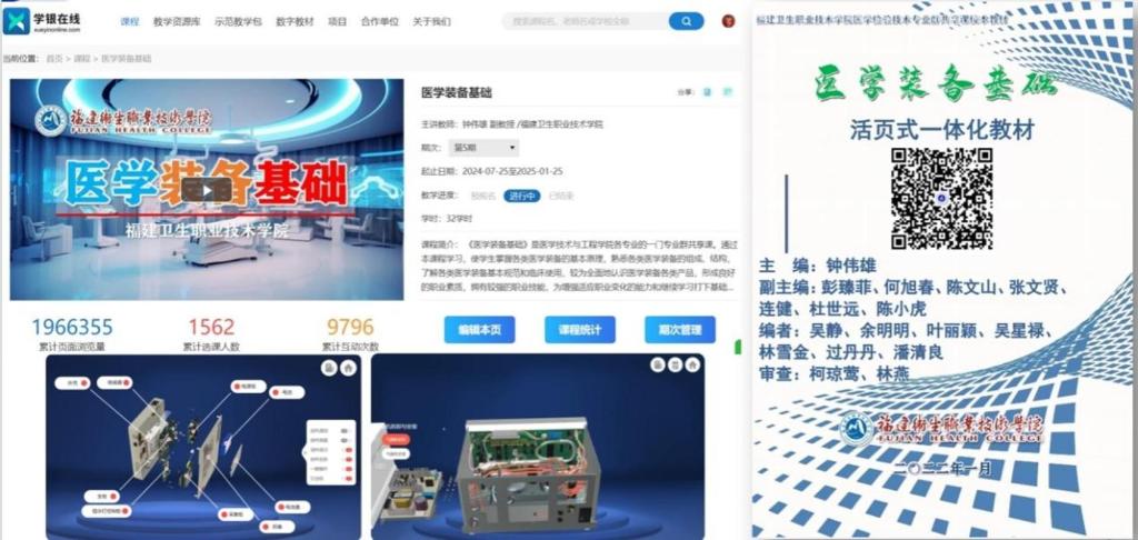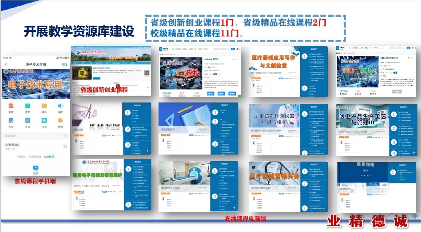 智能嵌入式控制技術(shù)、醫(yī)用 X 射線成像技術(shù)及設(shè)備、CT 技術(shù)及設(shè)備、醫(yī)用超聲成像技術(shù)及設(shè)備、醫(yī)療設(shè)備質(zhì)量控制與檢測(cè)、醫(yī)電產(chǎn)品組裝與調(diào)試。建設(shè)有福建省省級(jí)職業(yè)教育智能醫(yī)療裝備技術(shù)專(zhuān)業(yè)教學(xué)資源庫(kù)。