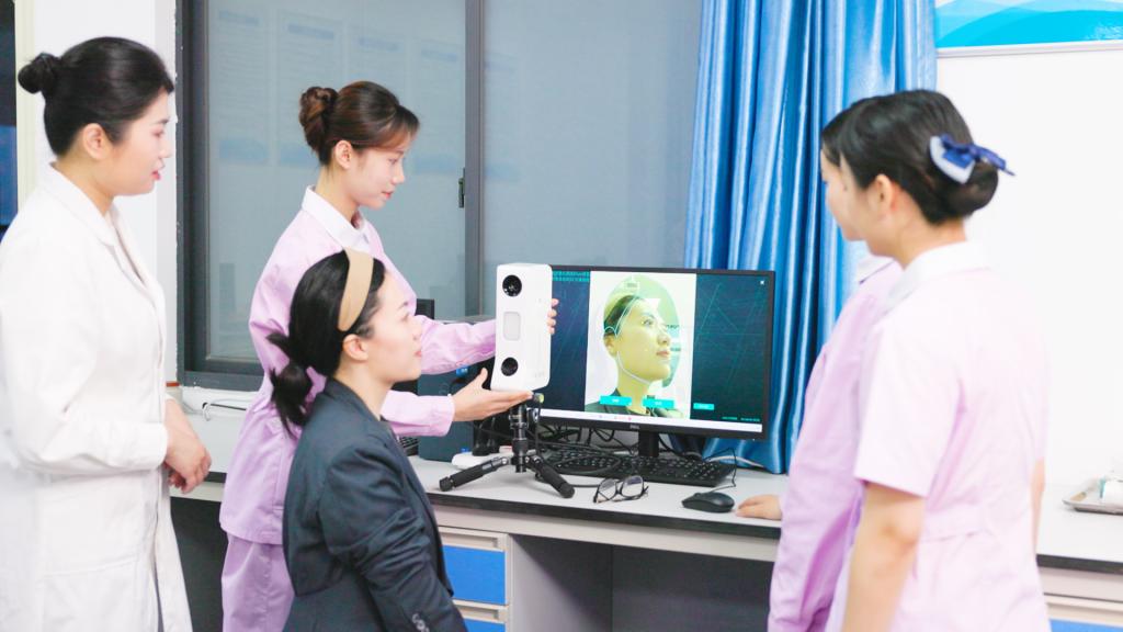 校內條件:頂配設施+實戰(zhàn)平臺,858㎡校內實訓中心,八大實訓室硬核設備光電美容室(配備超聲王、二氧化碳激光儀、激光光子等設備)、中醫(yī)美容室(紅外線太空艙、艾灸治療儀等)、數字美容實訓室(AR魔妝鏡、3D整形虛擬仿真軟件)等。