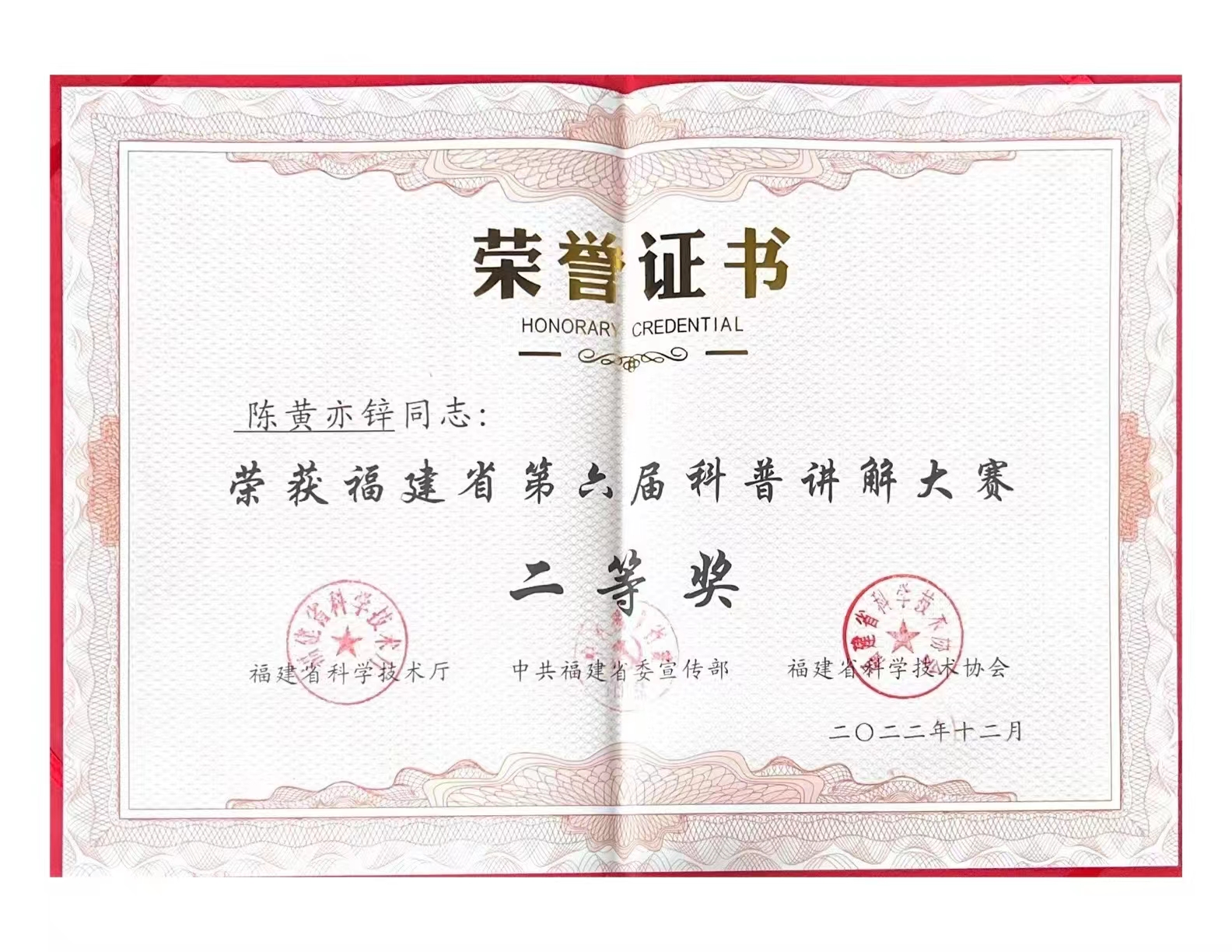 獲獎證書