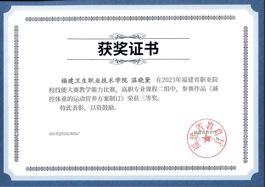 學院以現代大健康產業(yè)為核心,構建了專業(yè)群體系,并深入挖掘各專業(yè)的內在價值,塑造了“尚美行健、塑德啟智”的文化特色。學院創(chuàng)新性提出“三色光”建設工程,以黨建創(chuàng)新和隊伍建設為著力點,深化“紅色”精神引領鑄魂工程;以專業(yè)提升和成果培育為發(fā)力點,推進“綠色”守正創(chuàng)新融合工程;以人才培養(yǎng)和事業(yè)發(fā)展為落腳點,打造“藍色”整合優(yōu)化發(fā)展工程。近年來,學生榮獲全國職業(yè)院校技能大賽高職組健身指導比賽團體三等獎、全國大學生計算機應用能力與信息素養(yǎng)大賽一等獎、“挑戰(zhàn)杯”福建省創(chuàng)業(yè)計劃競賽銀獎、全國美容產教融合職業(yè)技能大賽二等獎、海峽兩岸暨港澳大學生職業(yè)技能大賽社群健康助理員三等獎、福建省職業(yè)院校技能大賽高職組健康與社會照護二等獎,“筑夢健康”實踐隊入選鄉(xiāng)村振興“篤行計劃”專項行動全國示范性團隊等。