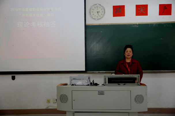 3月24日至25日,由福建省教育廳、福建省人力資源和社會保障廳、福建省農(nóng)業(yè)廳、福建省衛(wèi)生和計劃生育委員會、福建省總工會、共青團福建省委、福建省中華職業(yè)教育社主辦,福建衛(wèi)生職業(yè)技術學院承辦的“2018年福建省職業(yè)院校技能大賽(養(yǎng)老服務技能賽項)”正式開賽。來自福建省5所高職院校共10名選手參加了此次比賽。本次大賽由姜小鷹教授任裁判長,裁判組由6位資深的養(yǎng)老護理專家組成。