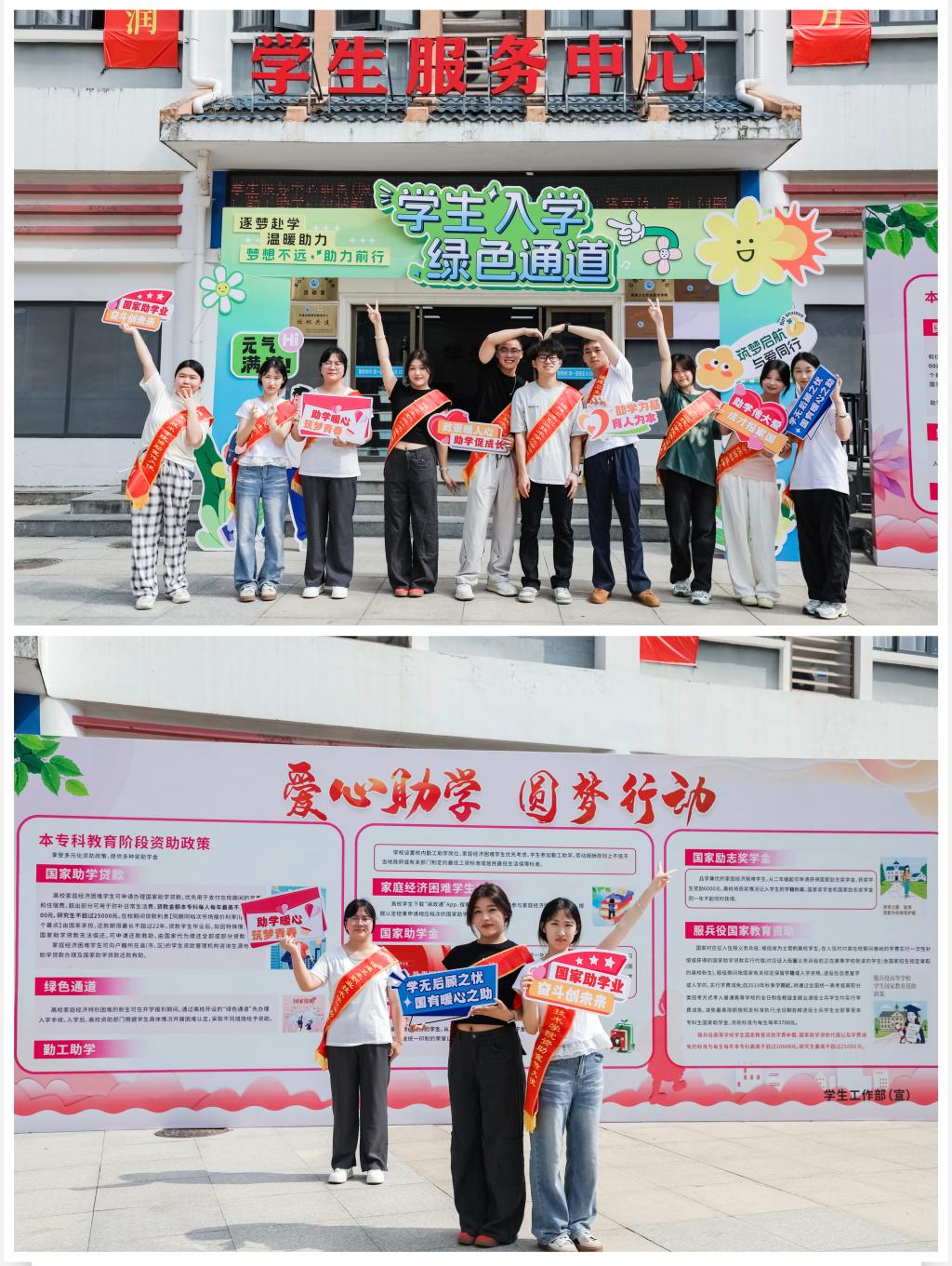 我?!熬G色通道”始終確保每一位家庭經(jīng)濟(jì)困難學(xué)生“無障礙入學(xué)”。學(xué)校結(jié)合暑假招生宣傳和社會實(shí)踐活動,向擬錄取新生開展資助政策宣傳,同時開通了資助熱線電話,開展資助政策咨詢、解答,讓新生和家長及時了解學(xué)校的各項(xiàng)資助政策。在新生入學(xué)綠色通道現(xiàn)場,開展生源地貸款確認(rèn)、征兵宣傳、資助政策咨詢、財(cái)務(wù)繳費(fèi)等服務(wù),讓學(xué)生在入校第一時間感受“一站式的溫暖”。