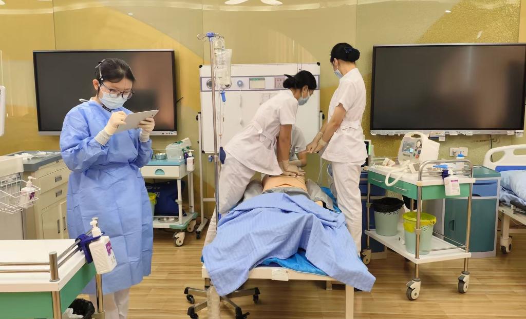 面對(duì)強(qiáng)勁對(duì)手,護(hù)理學(xué)院迅速組建專項(xiàng)備賽組。團(tuán)隊(duì)師生放棄節(jié)假日及暑期休息時(shí)間,一方面深入研讀賽項(xiàng)要求和評(píng)分要素,夜以繼日地制定、打磨備賽方案;另一方面聚焦全流程患者護(hù)理細(xì)節(jié),反復(fù)修改優(yōu)化操作環(huán)節(jié),逐一攻克技術(shù)難點(diǎn)。指導(dǎo)老師李冬秀回憶:“那段時(shí)間,我們和學(xué)生一起泡在訓(xùn)練室,經(jīng)常討論到深夜。每一個(gè)動(dòng)作都要反復(fù)打磨,每一個(gè)流程都要優(yōu)化再優(yōu)化?!?/p>