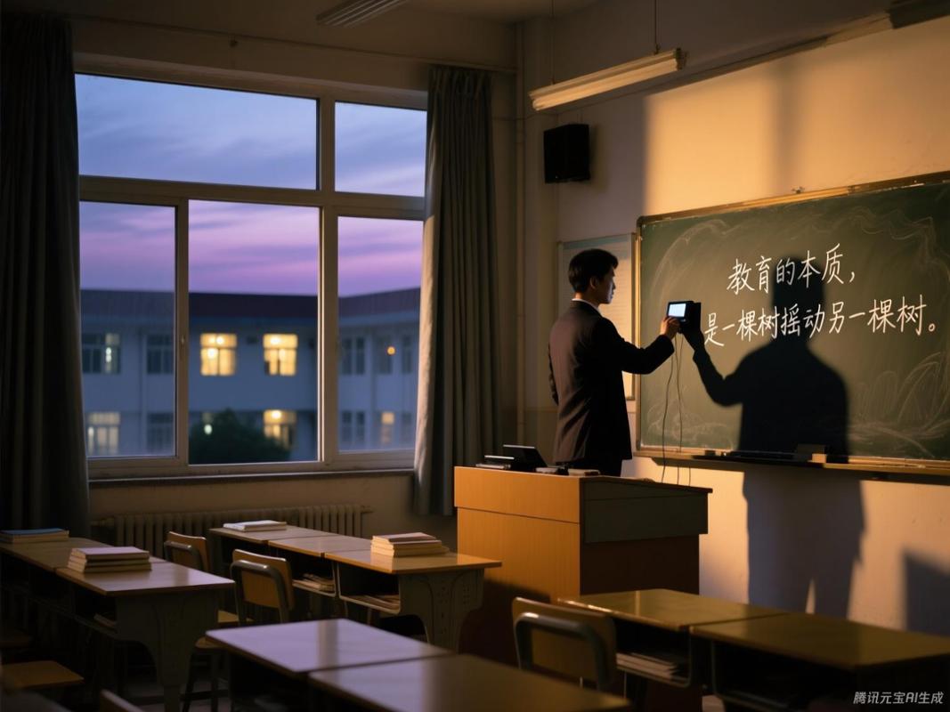 暮色漸濃時(shí),教學(xué)樓的燈光次第亮起。有學(xué)生拍下窗前的剪影:一位教師站在講臺(tái)上調(diào)試設(shè)備,身后的黑板上寫(xiě)著“教育的本質(zhì),是一棵樹(shù)搖動(dòng)另一棵樹(shù)”。秋風(fēng)穿過(guò)校園的林蔭道,帶走一片桂花瓣,卻把“老師,謝謝您”的回響,留在了每一個(gè)人的心里。