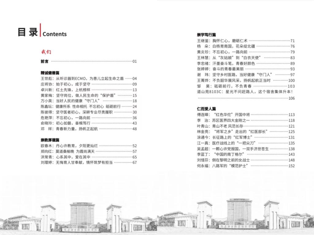 讀本以健善仁校園文化為主軸線,以校史為基,以一訓三風和校歌為四梁八柱,以優(yōu)秀校友、優(yōu)秀師生事跡為磚木瓦石,以仁人志士的紅醫(yī)精神為示燈標高,希望建造一座具有百年閩衛(wèi)特色的文化大廈。