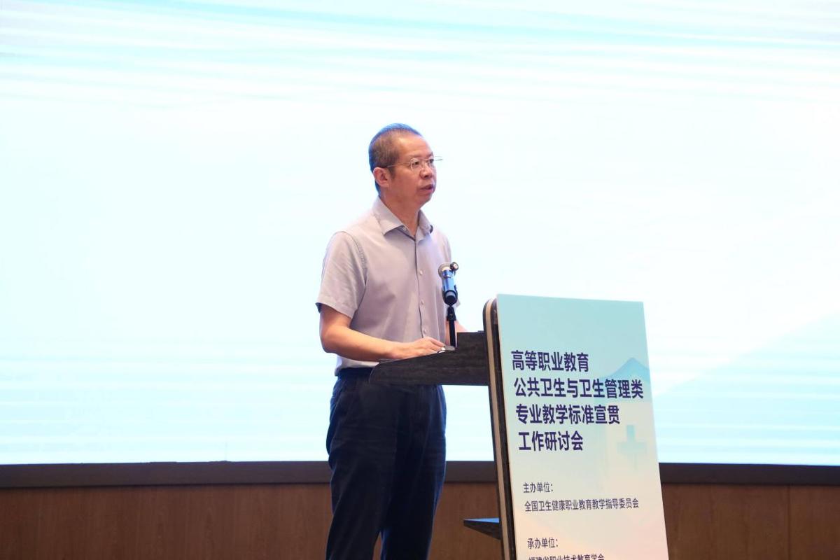 開幕式上,福建省職業(yè)技術教育學會會長吳國榮、福建衛(wèi)生職業(yè)技術學院黨委書記曾武祈,全國衛(wèi)生健康行指委公共衛(wèi)生與衛(wèi)生管理類專業(yè)委員會主任、蘇州衛(wèi)生職業(yè)技術學院黨委書記時玉昌,全國衛(wèi)生健康行指委副主任委員、天津醫(yī)學高等??茖W校校長張彥文先后致辭,為研討會定下了“解讀標準、凝聚共識、推動落地”的核心基調。研討會開幕式由福建衛(wèi)生職業(yè)技術學院校長徐偉主持。