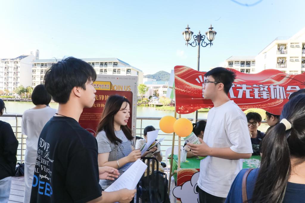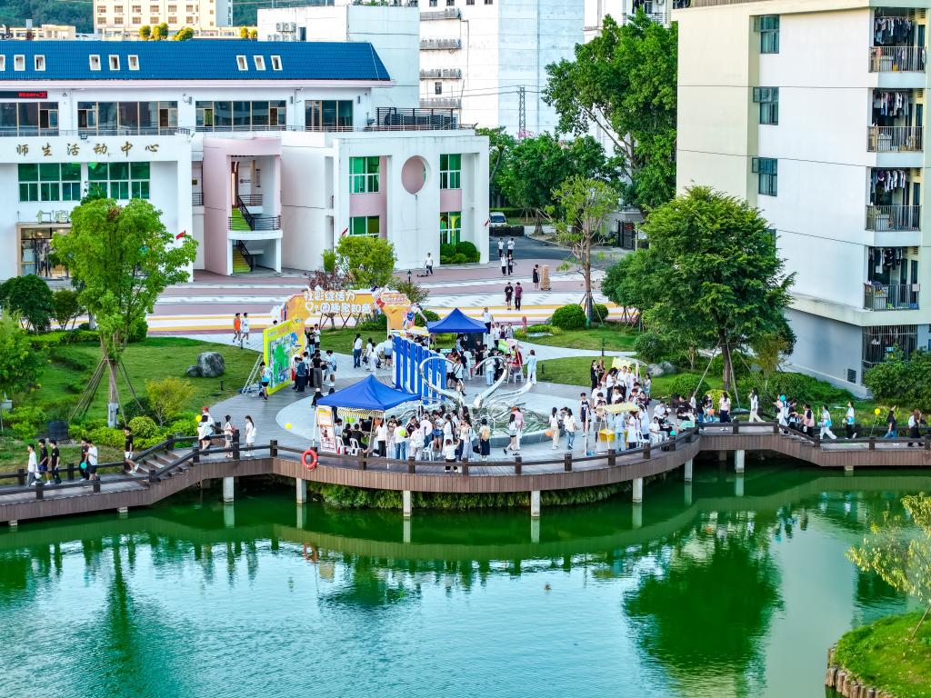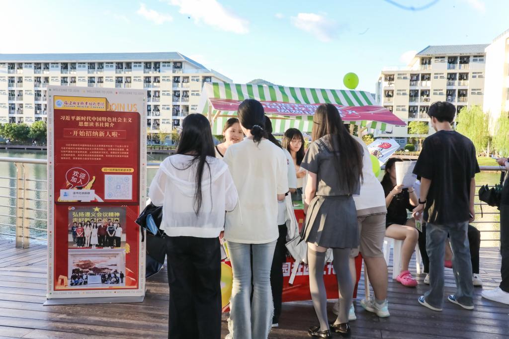 9月25日,我校于仁心湖廣場棧道旁舉辦校園社團(tuán)文化節(jié)暨“一站式”社區(qū)特色活動。校黨委書記曾武祈、校紀(jì)委書記林玲、副校長黃銘珊蒞臨現(xiàn)場,黨政辦公室、紀(jì)委辦公室、學(xué)生工作部和團(tuán)委負(fù)責(zé)人參加。秋日的仁心湖波光瀲滟,與五大主題區(qū)域的38個(gè)社團(tuán)攤位洋溢的青春熱情相得益彰,共同繪就一幅生動的校園文化活動畫卷?;顒右蚴着嗣蚬隙酄枃H學(xué)生的參與更添國際色彩,充分展現(xiàn)了我校國際化辦學(xué)氛圍與師生良好的精神風(fēng)貌。