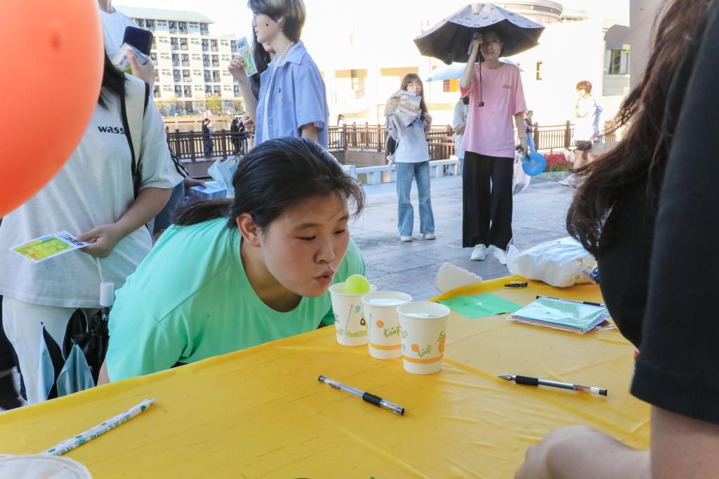 體育活動類社團(tuán)氛圍熱烈,內(nèi)容多樣?,F(xiàn)場設(shè)有排球顛球、乒乓球趣味挑戰(zhàn)等個(gè)人項(xiàng)目,并融合多項(xiàng)團(tuán)隊(duì)協(xié)作游戲,學(xué)生在運(yùn)動中展現(xiàn)青春活力,增強(qiáng)集體凝聚力,提升互助意識。