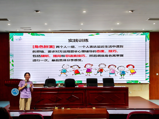 本次培訓(xùn)共開展6場主題講座,內(nèi)容涵蓋朋輩心理輔導(dǎo)的倫理規(guī)范、班級心理委員概述、大學(xué)生心理問題的初步鑒別、識別心理危機(jī)信號、朋輩心理輔導(dǎo)的實(shí)務(wù)操作、心理健康教育主題活動的設(shè)計(jì)與組織等。