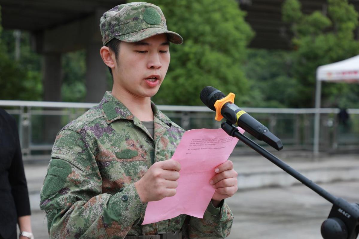 參訓(xùn)教官代表要求教官團(tuán)隊(duì)嚴(yán)格按照軍訓(xùn)大綱執(zhí)行任務(wù),希望同學(xué)們能以軍人的身份嚴(yán)格要求自己,把訓(xùn)練中的收獲轉(zhuǎn)化為前進(jìn)的動(dòng)力。