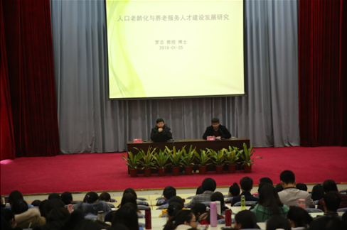 1月25日下午,中國高等職業(yè)教育研究會秘書長、全國養(yǎng)老產(chǎn)業(yè)教育聯(lián)盟顧問、全國健康與養(yǎng)老專委會榮譽(yù)主任羅志教授蒞臨我院,在學(xué)院學(xué)術(shù)廳舉辦了《人口老齡化與養(yǎng)老服務(wù)人才建設(shè)發(fā)展研究》專題講座。講座由蘇友新院長主持,黃銘珊副院長、鄭翠紅副院長及全體教職工聆聽了本次講座。