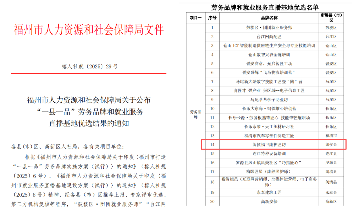 為深入落實(shí)福州市人社局《福州市打造“一縣一品”勞務(wù)品牌實(shí)施方案(試行)》文件精神,我校作為福州市閩侯地區(qū)唯一“一縣一品”勞務(wù)品牌建設(shè)單位,緊扣區(qū)域大健康產(chǎn)業(yè)發(fā)展脈搏,秉持“匠心筑夢(mèng),康護(hù)為民”核心理念,精準(zhǔn)錨定康養(yǎng)服務(wù)人才缺口,傾力打造兼具地域辨識(shí)度與行業(yè)影響力的勞務(wù)品牌,為閩侯及周邊健康產(chǎn)業(yè)高質(zhì)量發(fā)展注入強(qiáng)勁技能動(dòng)能。