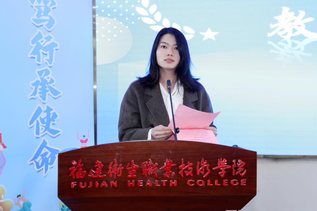 教師代表陳慧蘭以“終身學習、職業(yè)溫度、赤子之心”三句寄語贈別畢業(yè)生,囑托大家保持專業(yè)精進,永懷人文關懷,在守護人民健康的道路上篤定前行。