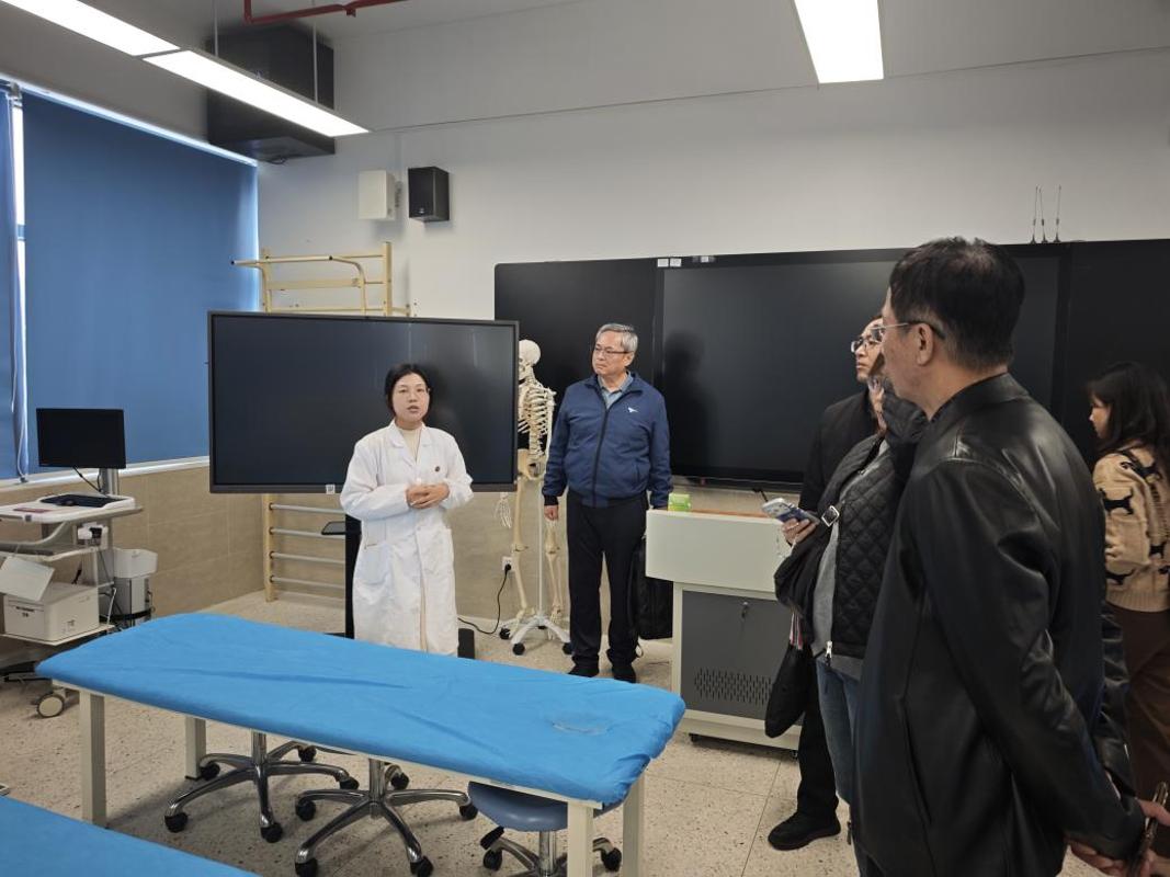 考察團(tuán)隨后走訪了健康學(xué)院實訓(xùn)基地,實地觀摩了預(yù)防醫(yī)學(xué)、健康管理等專業(yè)的實訓(xùn)教學(xué)現(xiàn)場,并依次參觀了醫(yī)學(xué)虛擬仿真基地、中醫(yī)藥文化館及醫(yī)學(xué)康復(fù)實訓(xùn)基地??疾靾F(tuán)成員對學(xué)校配備完善的實訓(xùn)條件與科學(xué)合理的人員配置給予了高度評價。