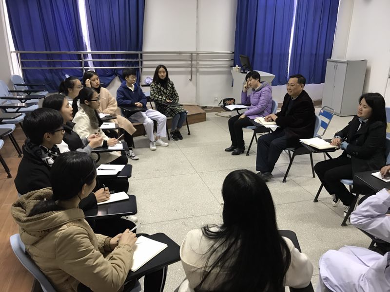 當(dāng)日下午,調(diào)研小組與護(hù)理系學(xué)生代表進(jìn)行了親切會(huì)談。曾武祈書記首先向?qū)W生代表宣傳了黨的十九大有關(guān)精神,以歷史故事、詩(shī)文歌曲等豐富內(nèi)容給學(xué)生們講解了黨的十九大報(bào)告中“新時(shí)代”的內(nèi)涵,并結(jié)合憲法日給學(xué)生們解讀了憲法。孩子們被這堂生動(dòng)活潑的形勢(shì)政策課感染。接著,調(diào)研小組與學(xué)生面對(duì)面,了解學(xué)生在校學(xué)習(xí)和生活的有關(guān)情況,并耐心傾聽了學(xué)生提出的問(wèn)題。