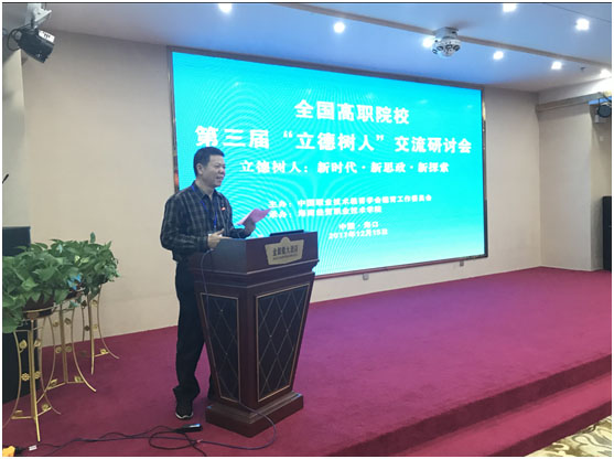 2017年12月15至16日,“新時(shí)代 新思政 新探索”全國高職院校第三屆“立德樹人”交流研討會在海口召開。會議由中國職業(yè)技術(shù)教育學(xué)會德育工作委員會主辦,海南經(jīng)貿(mào)職業(yè)技術(shù)學(xué)院承辦,來自全國各?。ㄊ袇^(qū))70余所高職院校的代表參加會議。我院作為中國職業(yè)技術(shù)教育學(xué)會德育工作委員會副主任單位,在林建團(tuán)副書記的帶領(lǐng)下,派代表參加了會議。
