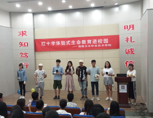 2017年10月19日,我院“永遠跟黨走,健康宣教校園行”主題團日活動在福建藝術職業(yè)學院第二學術報告廳舉行。我院學生會紅十字急救培訓部志愿者將應急救護知識技能帶進福建藝職院,藝職院團委學生會干部一同參加活動。