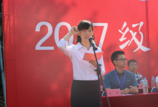 教師代表陳鈺老師首先發(fā)言,對2017級新同學們的到來表示熱烈的歡迎和衷心的祝賀。她說,在大家開始大學生活之際,要注意學習方式的轉(zhuǎn)變,不斷提升自己的專業(yè)素質(zhì);盡快樹立專業(yè)思想,提高綜合素質(zhì);樹立一鼓作氣、持續(xù)拼搏的精神。希望大家調(diào)整好自己的狀態(tài),珍惜時間,刻苦學習,以旺盛的精力,積極進取的心態(tài)開啟自己的大學時代。